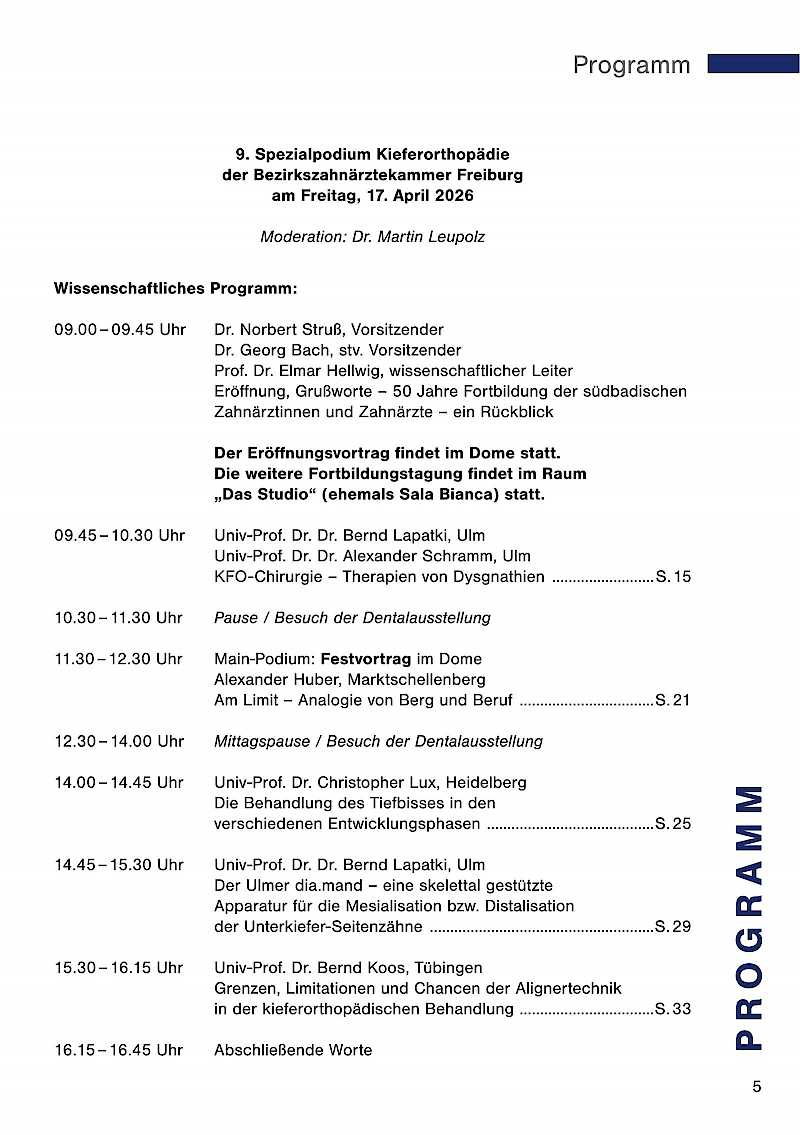 Und doch gibt es einen ganz wesentlichen Unterschied zu den Vorjahren! Das diesjährige Spezialpodium Kieferorthopädie unterscheidet sich insofern von denen der vergangenen Jahre, dass es mit dem 50jährigen Jubiläum der Fortbildungstagung der südbadischen Zahnärztinnen und Zahnärzte zusammenfällt. Nur sehr wenige Fortbildungsveranstaltungen haben einen "5er" davor, und unsere Jahrestagung gehört nun dazu.