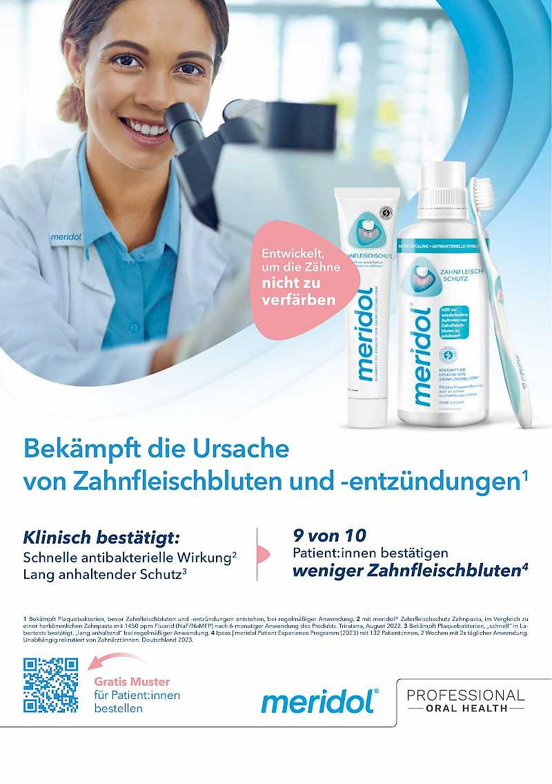 Zudem erhalten Sie in den Indikationen Gingivitis und Parodontitis einen Einblick in unser Produktportfolio, sodass Sie Ihre Patienten optimal bei der häuslichen Prophylaxe unterstützen können.