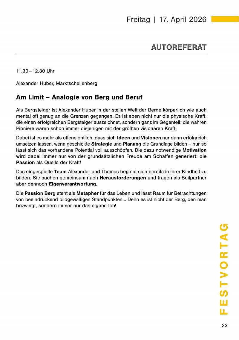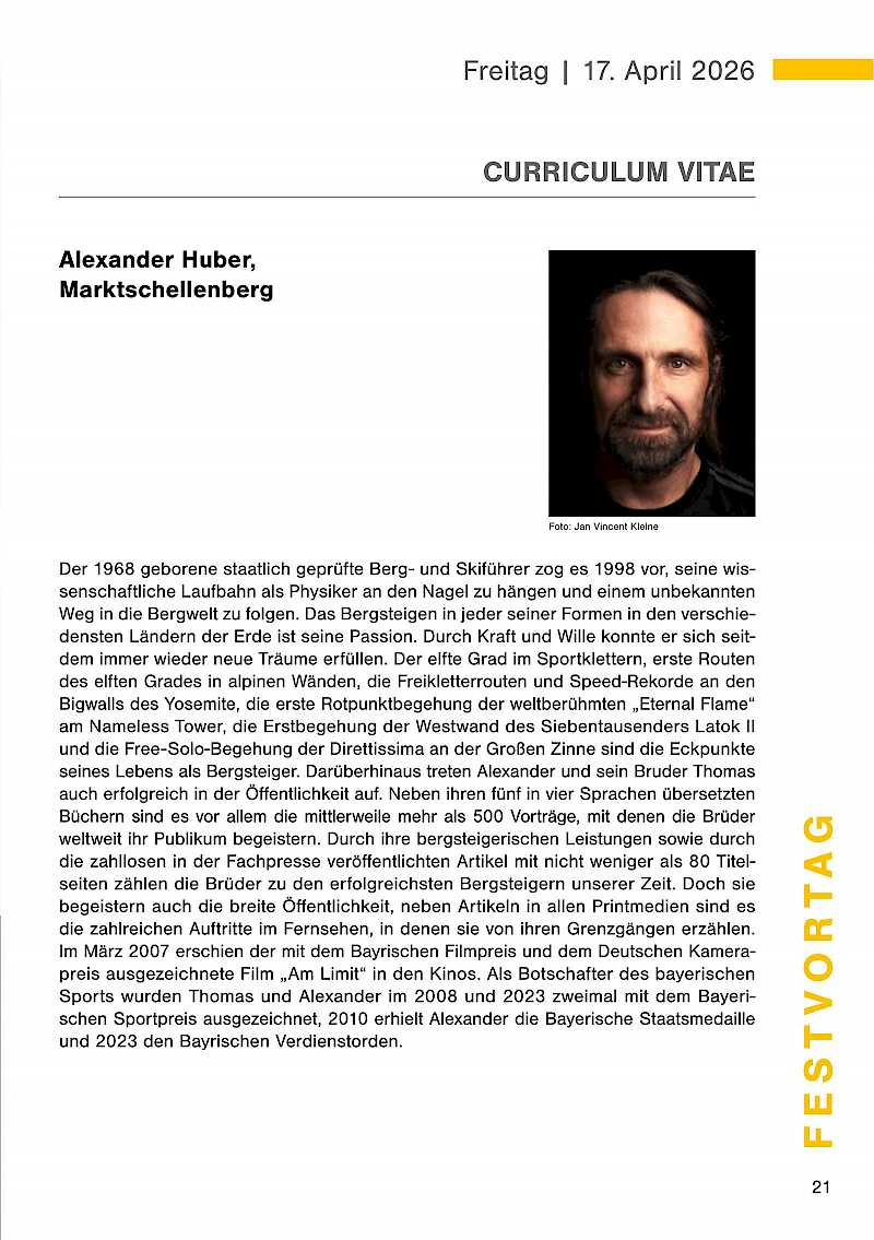 Als Bergsteiger ist Alexander Huber in der steilen Welt der Berge körperlich wie auch mental oft genug an die Grenzen gegangen. Es ist eben nicht nur die physische Kraft, die einen erfolgreichen Bergsteiger auszeichnet, sondern ganz im Gegenteil: die wahren Pioniere waren schon immer diejenigen mit der größten visionären Kraft!