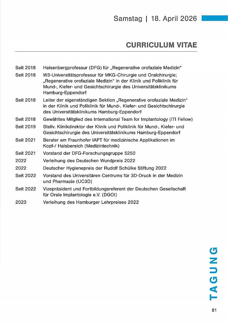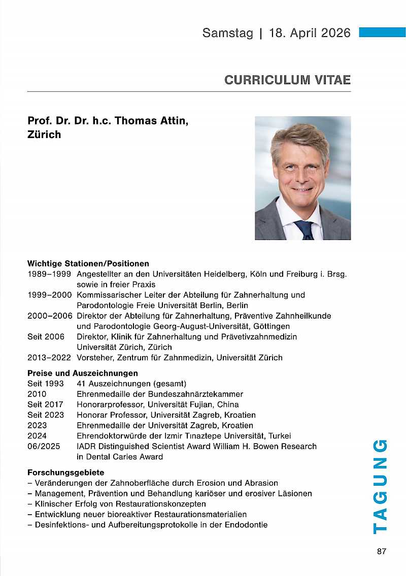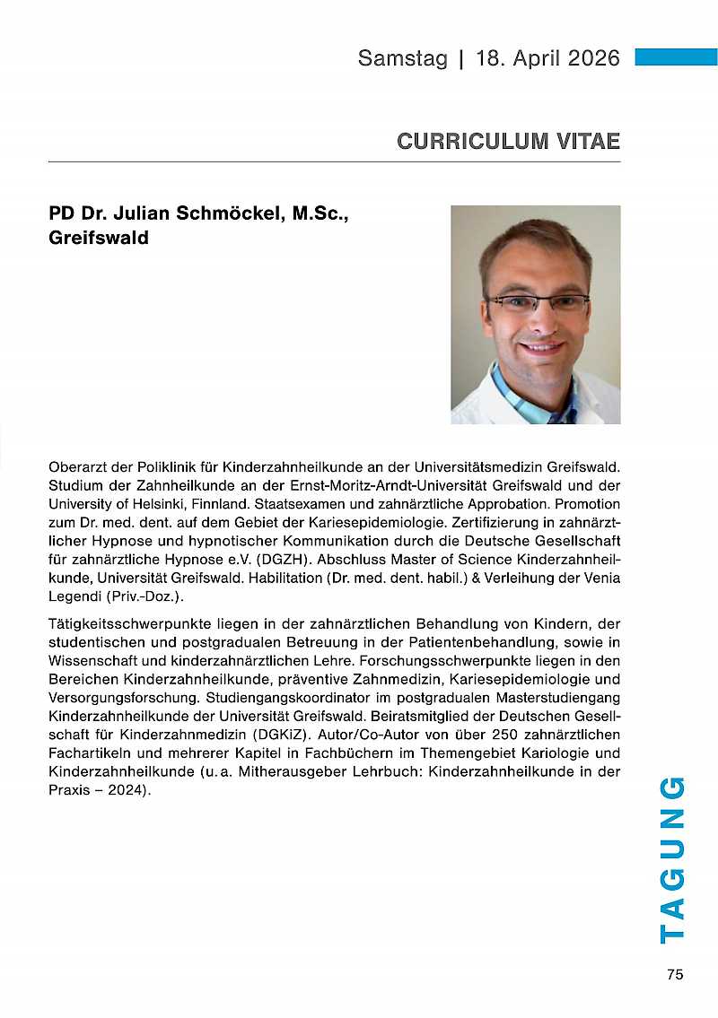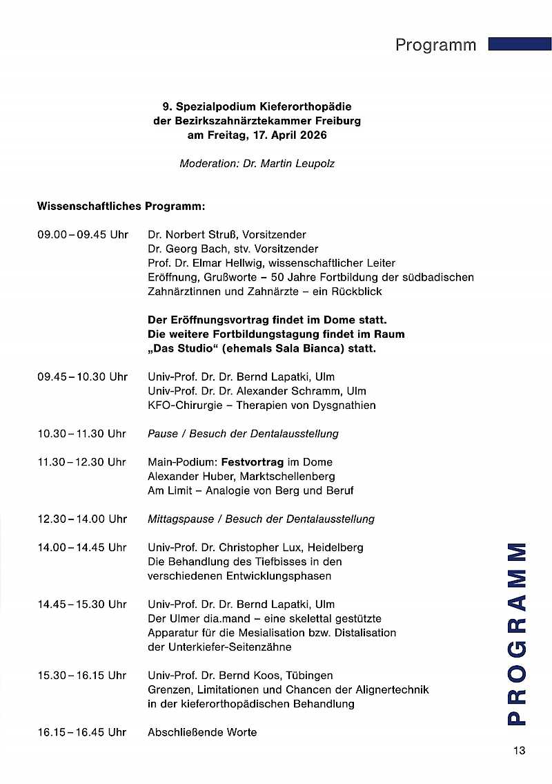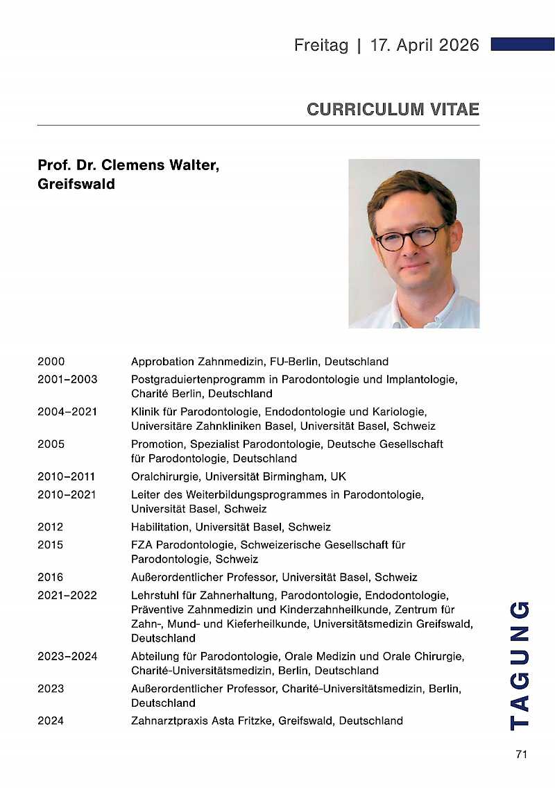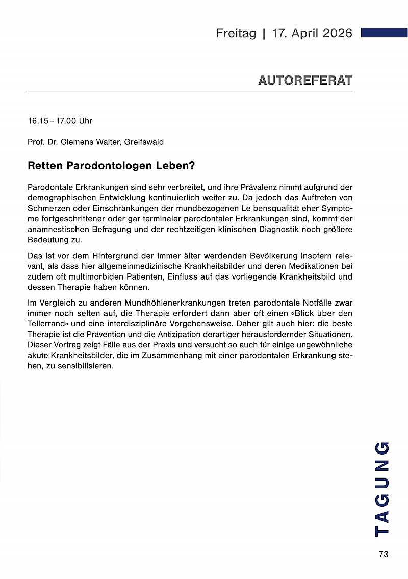 Renommierte Referenten werden in ihren Vorträgen auf diese Themen eingehen und wertvolle Impulse für Ihre tägliche Arbeit geben. Nutzen Sie die Gelegenheit, sich mit Kolleginnen und Kollegen auszutauschen, neue Kontakte zu knüpfen und sich über aktuelle Trends und Technologien zu informieren. Lassen Sie uns gemeinsam auch auf die Erfolge der vergangenen 50 Jahre zurückblicken und gleichzeitig einen Blick in die Zukunft der Zahnmedizin werfen.