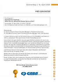 Auch in diesem Jahr bieten wir daher wieder die Möglichkeit der Teilnahme am Pre-Congress, der am Vorabend der 50. Jahrestagung stattfindet.