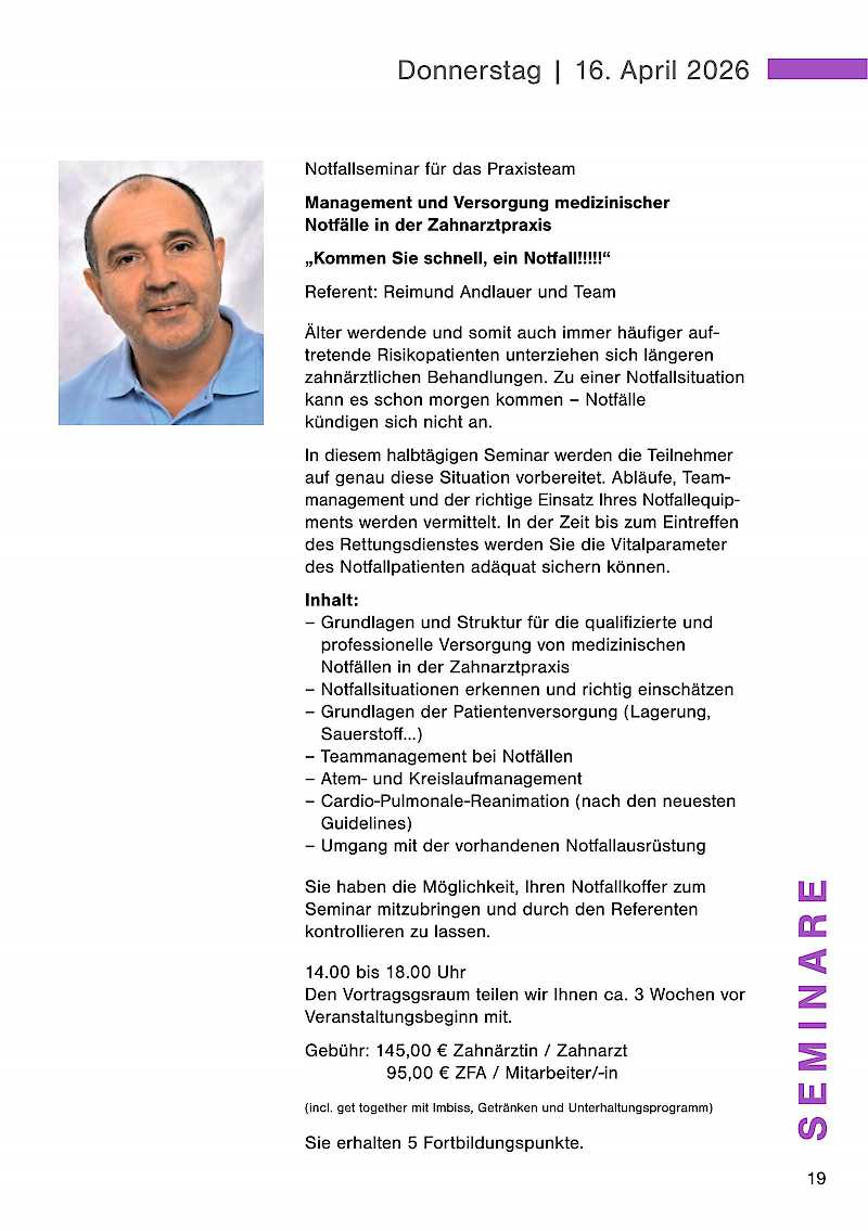Älter werdende und somit auch immer häufiger auftretende Risikopatienten unterziehen sich längeren zahnärztlichen Behandlungen. Zu einer Notfallsituation kann es schon morgen kommen – Notfälle kündigen sich nicht an.
