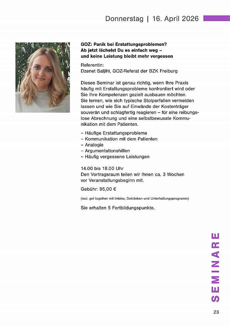 Im Wesentlichen geht es darum, dass Wissen rund um die zahnärztliche Abrechnung regelmäßig zu aktualisieren und den Blick dafür kontinuierlich zu schärfen.