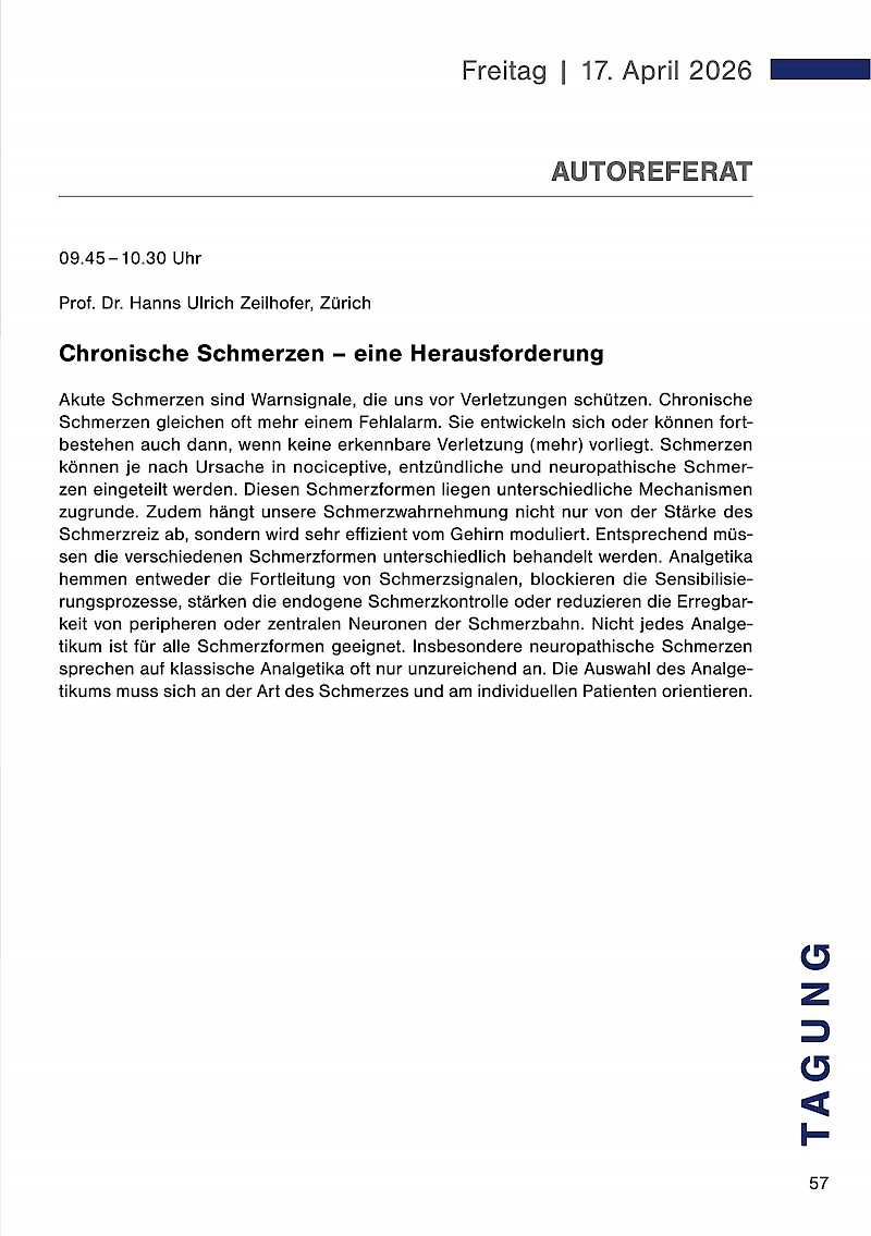 Der Themenschwerpunkt der diesjährigen Jahrestagung lautet „Schmerzfälle, Notfälle und Unfälle – Das Unvorhersehbare meistern".