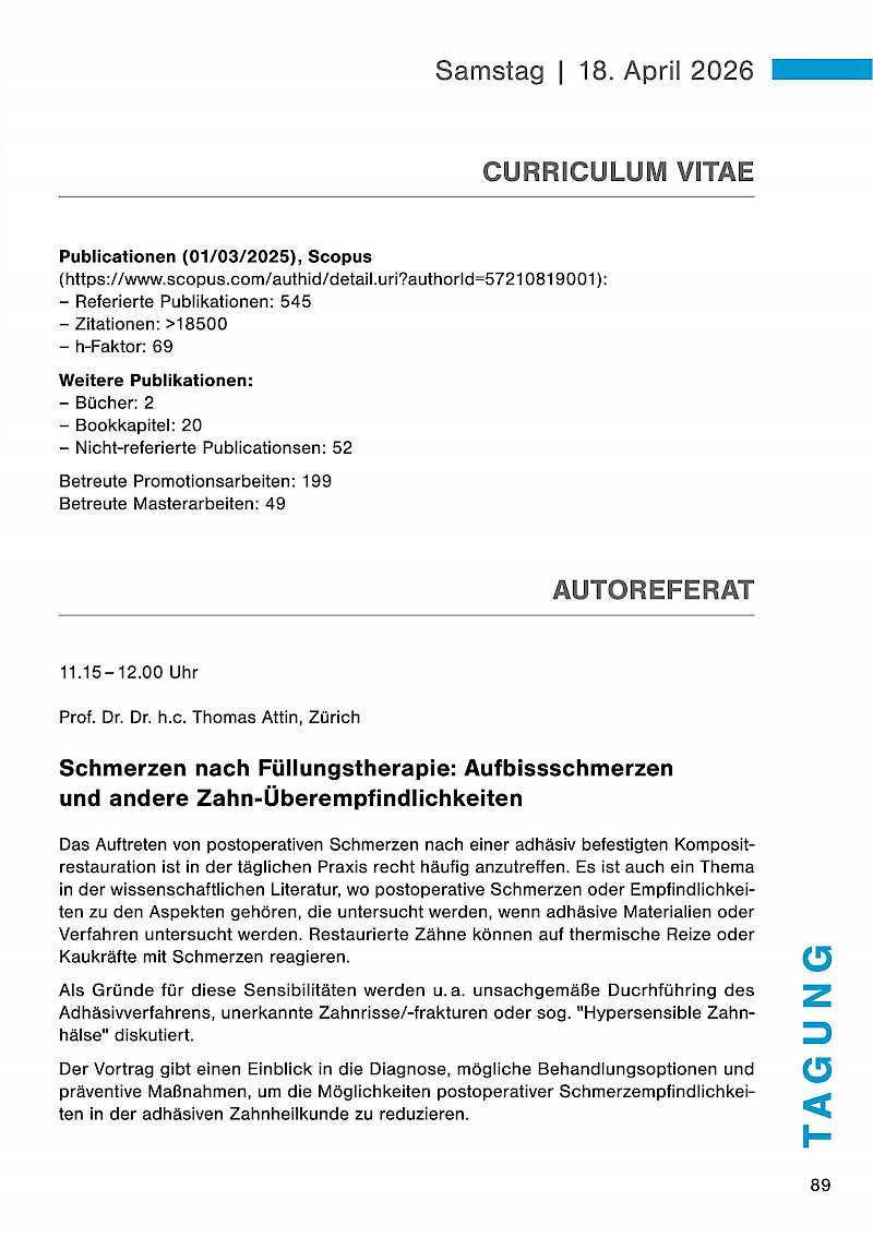 Der Vortrag gibt einen Einblick in die Diagnose, mögliche Behandlungsoptionen und präventive Maßnahmen, um die Möglichkeiten postoperativer Schmerzempfindlichkeiten in der adhäsiven Zahnheilkunde zu reduzieren.